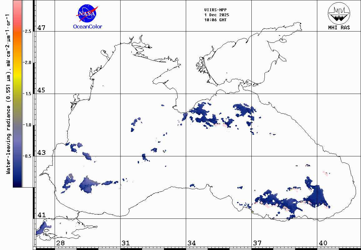 Исходящее из воды излучение (551 нм) |